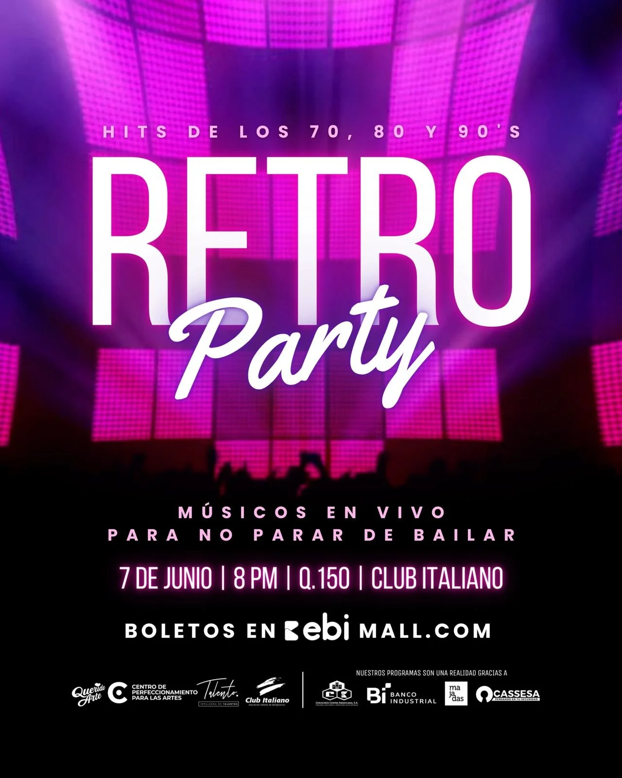 RETRO PARTY: Ven a bailar por una buena causa. Concierto / fiesta con los Hits de los 70, 80 y 90’s en español, inglés y latino.