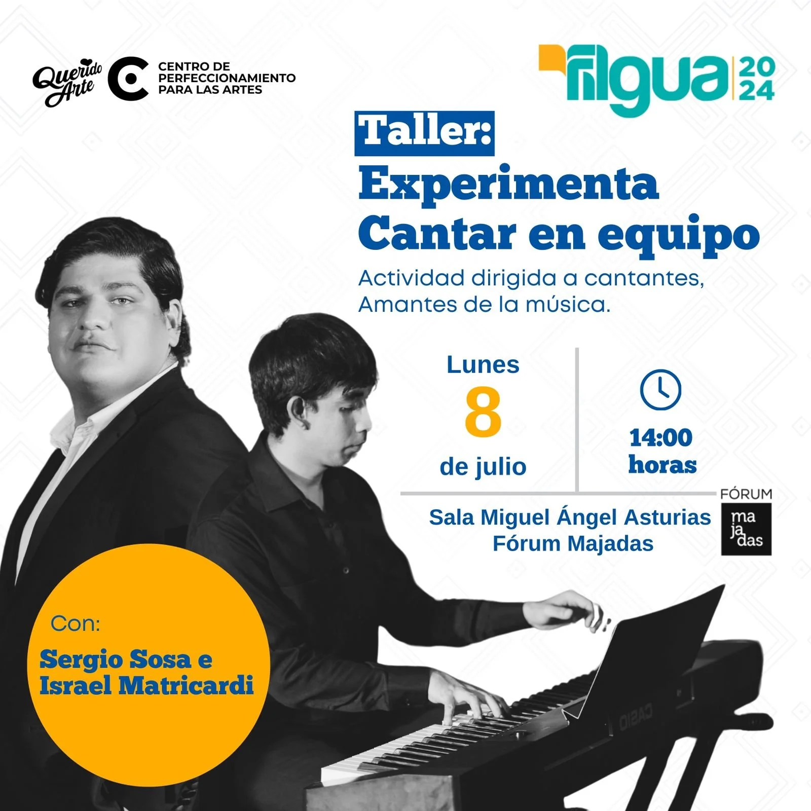 EXPERIMENTA CANTAR EN EQUIPO - Taller de canto coral dentro de FILGUA 2024 lunes, 8 de julio de 2024 2:05 p. m. 3:40 p. m. Fórum Majadas Ciudad de Guatemala Guatemala (mapa) Google Calendar ICS