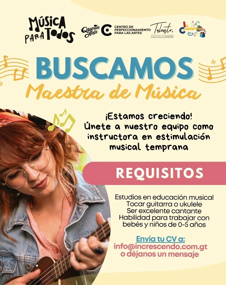 📩 Envíanos tu CV a: info@increscendo.com.gt y a musica@queridoarte.com