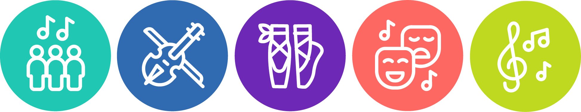 Los programas artísticos y de práctica orquestal y coral que apoyamos incluyen las siguientes agrupaciones y actividades: